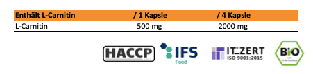 500mg L-Carnitin Tartrat pro Kapsel